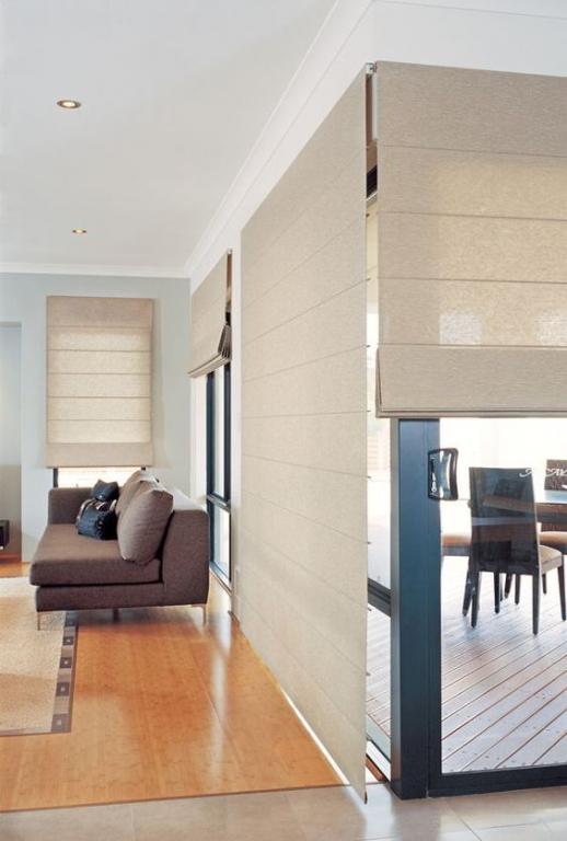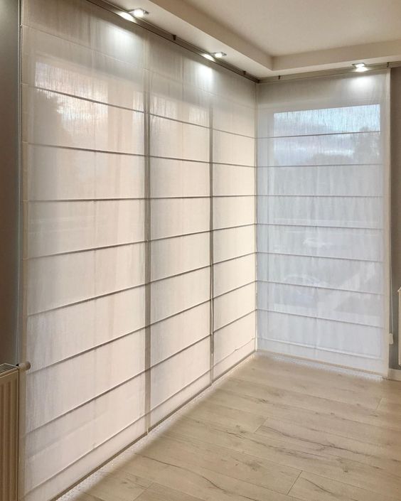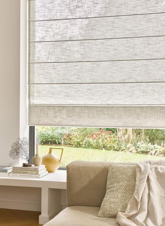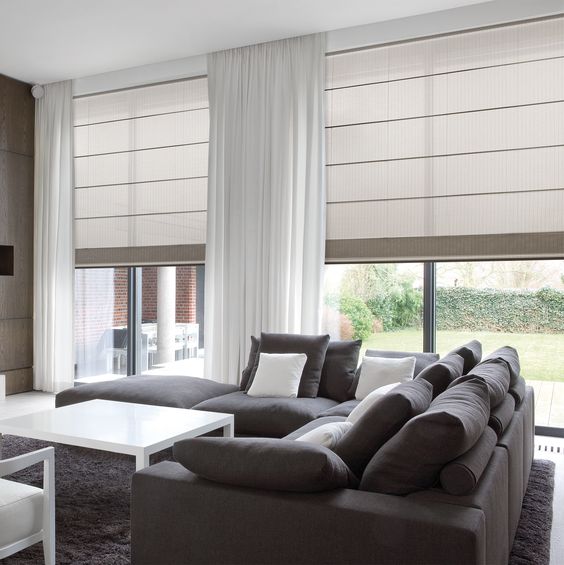 A Persiana Romana proporciona sofisticação e charme, pois possuem um estilo único e apresentam várias opções em tecidos naturais, sintéticos, translúcidos e black out. Quando recolhido, o tecido forma dobras onduladas sobrepostas que vão se acumulando na parte superior.